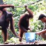 Baby Orang Utans below one year old -- who do not know how to hold milk bottles on their own, are even brought home by park rangers every night! The baby Orang Utans wearing disposable diapers we saw on video (the quarantine area, indoor and outdoor nursery are restricted areas) are especially adorable. Once they are weaned, toddlers are then placed in the outdoor nursery. Here, they learn to adapt to living outdoors.