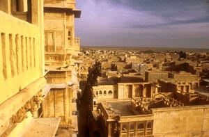 The city prospered initially, protected against shifting sands and feudal marauders by a steep ring of giant stone ramparts. It became a coveted stronghold on the great Spice Route from Persia and Afghanistan: a city of caravanserais - buildings surrounding a central courtyard in which the merchants took shelter. All dwellings, from the largest palace to the smallest shop, were carved and burnished from the local golden-yellow sandstone. Houses are still built in the medieval manner to merge with the old.