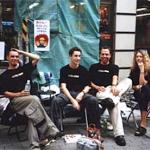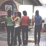 Now it warrants mentioning how four incompetent acting virgins like us got thrown into a commercial shoot in the first place, hired the day before no less. The company had apparently paid a considerable sum for three experienced models to fly in from Los Angeles. The events of September 11th erased all of those plans and three Japanese women were recruited locally to stand in for the absentee Americans. This left the whole scene free of foreigners. Knowing that even the most unattractive western face will at the very least garner some curiosity, the company felt a foreign presence was critical to the shoot. A frantic, last minute search uncovered four amateurs now standing shoulder-to-shoulder with a very experienced crew obviously short on time, money, and most alarmingly, patience. In addition, they hoped to wrap up the all of the video and audio in one day, which sounded ambitious even to our ignorant ears.