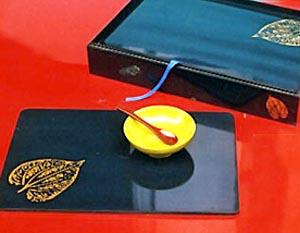 Two quality lacquerware shops located in the Old Quarter both offer more unusual variations on the common mass-produced stores. Anh Duy (25 Hang Trong) have skilled craftspeople making high quality lacquerware products, using superior bases and paints (with up 16 layers). They sell the traditional, highly polished lacquerware so prevalent in other shops, such as the smooth, lustrous plates, or wooden boxes with bronze catches and handles ($7.50-16). This high sheen, deep colored, traditional lacquerware is cheaper, but it's not so strong, can easily be scratched and broken and is lighter than modern lacquerware, which Anh Duy specializes in. Modern lacquerware is more expensive, but higher quality products are used, so wares are heavier, superior quality and more durable. It has a more contemporary style: Japanese influenced-shapes, with a matt finish and lighter, brighter hues. There are three ways of production. First, high-quality bamboo covered with a special cloth and paints; thus bamboo -unlike traditional products - is visible in designs. Secondly, MDF is used as a base (compressed natural wood powder) and thirdly, MDF plus split bamboo on the interior surface, making for more interesting designs. Check out wonderful bowl sets complete with chopsticks threaded through, angular bowls ($10), large fruit bowls ($7.50), eggshell biscuit tins ($17), or trays ($12-17).