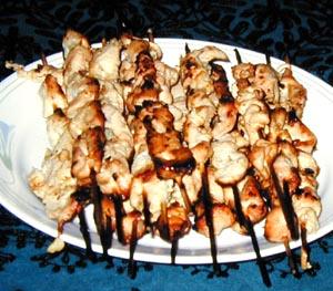 Place chicken strips on skewers, then broil for about 5 minutes on each side or until chicken is done. Serve hot with dipping sauce.