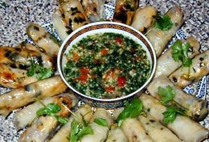 Overshadowing these popular foods are the seafood dishes. Crabs, lobsters, mussels, shrimp, squids, and countless types of fish are found on the daily menus of all the Vietnamese households or restaurants. Also, without exception, soups are popular, and are almost always consumed with every meal. From Mien Ga (a chicken and fish sauce noodle soup, spiced with herbs) and Hu Tieu (a chicken, meat and shrimp soup served with a broth over rice noodles) to Canh Chua (a seafood sweet and sour soup served with fruit and green herbs) and Mang Tay Nau Cua (an asparagus and crab meat soup), they are all mouth-watering.