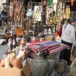 The picturesque parts of Jaffa are the Port and "old Jaffa," a slickly reconstructed tourist haven with art galleries and pricey restaurants overlooking the sea. More funky, and a hundred times more fun, was the daily flea market, where all manner of detritus sat arranged on folding tables: stuffed alligators, hunukkiahs, 1950s lighting fixtures, tarnished Seder plates, used accordions and hookahs, dishes and obsolete film projectors. Fun to photograph, but not much stuff you'd want in your house - although I was tempted to bargain for an illuminated world globe, lettered in Hebrew. If you find yourself in the vicinity, be sure to stop in at Puaa: a great little open-air café with Persian carpets and the loveliest mint tea I've ever tasted.