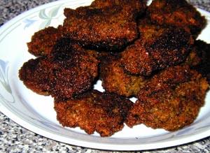 In a saucepan, add oil to a depth of 1 inch and heat, then drop in heaping tablespoons of the paste and deep fry over medium to golden brown (if patties tend to break, add more flour, or if paste too thick, add water). Drain on paper towels, then serve hot with chutney.