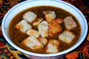 At the same time, serve the juice in a separate bowl as a soup with each diner adding croutons to taste.