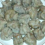 Form dough into about 40 balls, then roll balls into rounds, then cover with a tea-cloth. Place 1 heaping teaspoon of filling on the centre of each round, then fold dough and pinch shut in half moon or any other shape desired.