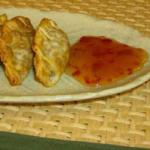In wok or a large skillet, heat about 2" of vegetable oil to sizzling temperature. Carefully slip three or four dumplings into the oil one at a time. Do not overfill the wok. Fry until golden brown on both sides, turning once. Remove dumplings from the oil and drain on paper towels. Repeat with remaining dumplings. Serve with dipping sauce. Makes about 50 dumplings.