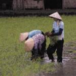 Lowland rice, also known as wet rice cultivation, is the most common type in Southeast Asia and allows for two or three crops a year. Seedlings are raised in nursery beds and transplanted after 25-50 days to a paddy, a flooded field surrounded by a dirt wall. The paddy is filled with two to six inches of water and the seedlings placed in rows approximately a foot apart.