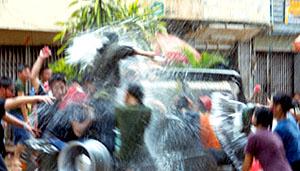 These old traditions are still observed by people all over Laos but the spirit of Pee Mai is nonetheless changing, perhaps due to the influence of neighboring Thailand. Vivid reports on Vientiane television that show the Thai Songkran festivities have no doubt inspired Lao people to arm themselves with high-pressured super-soakers, hoses and buckets of ice water for the three-day festival. It's almost enough to make one stay inside and play solitaire all day.