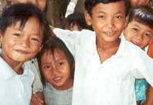 During our wait a flock of village children warily emerged from out of the shadows and approached me. Their trepidation soon gave way to big smiles and greetings of "Soo-a sa-day!" and "hello." Passing out multi-colored balloons to the little munchkins also helped ingratiate me to them. I ended up entertaining the kids for the better part of an hour while Wutee sweated over his motorcycle. In addition to playing the part of balloon man I tested my limited Khmer abilities on the children and took photos of them. The combination was a hit. Later, when the adjacent school broke for recess, more curious children came over to what the fuss was all about. Naturally they hammed it up for my camera and requested some balloons of their own. The package of fifty was exhausted in short order. I could have easily distributed over a hundred to the friendly and slightly silly young spectators. By the time Wutee had the flat fixed and was ready to resume our drive, I had to reluctantly bid my new friends goodbye. With vigorous waves and more shouts of "hello" and "bye bye" I rode off into the dust.