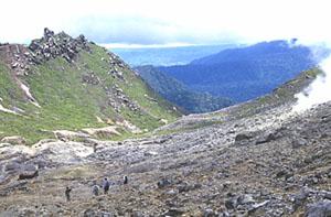 To my left was a steeply excavated path of ash-white sand that rounded the volcano and disappeared into a pall of steam and smoke. On my right a track meandered into a tangle of jungle, from where I could have sworn I smelled a Gauloise. Thinking it was the lesser of two evils, I lunged into the dense undergrowth, ripping yards of thorns like velcro strips from my skin. Within minutes the thick vegetation disorientated me. Brambles scratched and grabbed, things squelched in my boots and spiders hung in hammocks across my face.