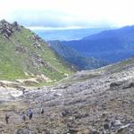 When I finally emerged into the hot, pale sun, my hands and legs were bleeding, and I was no closer to the summit of the volcano. It loomed far ahead of me, mocking my ineffectual attempts to scale its yellow slopes. I waited, quite miserable, on a white rock until the guide found me, and then I followed her meekly, panting and sweating along a ridge of soft black rock and white ash, until we were walking on what could have been the moon.