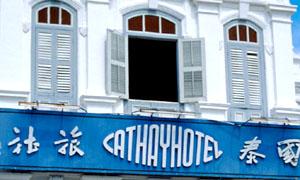 As with everything else in Georgetown, business at the Cathay is slow. I need no reservation, and the desk clerk swaps a room key for 69 ringgit ($19.00 USD). As I trudge up a long flight of stairs to my room-the hotel lacks an elevator, of course-I notice that the clock at the top of the staircase has stopped at 6:50. This seems emblematic of the hotel itself, not to mention the entire city, both of which remain stuck somewhere back in the days of colonial-era Penang.
