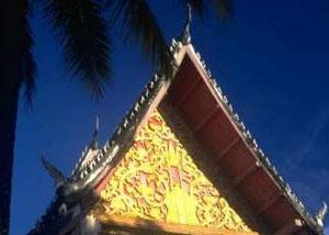 At the strip's most western point is the famous Sala Kounta, known to all as the Sunset Bar. Here, amidst a decorative tangle of twisted roots and foliage, gourds and wooden wot-nots, is where locals and ex-pats come to watch the big fiery ball get nicely quashed, along with their thirst, as it dips into the waters of "The Mother of all Rivers". The soul of Vientiane, you tell yourself as another ice cold Beer Lao somehow finds its way onto yo ur table, is not so elusive after all.