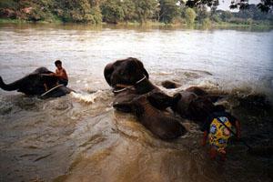 My wife and I have just arrived at Ayutthaya after a short holiday in Bangkok, and were rather bemused by the antics of the baby elephants. We initially heard about this camp from an e-mail sent by a friend who visited Ayutthaya. So after several days of wallowing in five-star hotels in Bangkok and stuffing ourselves silly with the delicious Thai food, we arrived at the camp in shorts and t-shirts for our short stint as volunteers.