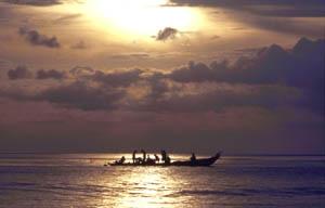 We spent the afternoon and the next morning soaking up the sun on a beach so deserted (except for the occasional fisherman) that it would have been uncivilized not to swim naked, and indulging in solid Malay food at give-away prices.