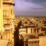 The city prospered initially, protected against shifting sands and feudal marauders by a steep ring of giant stone ramparts. It became a coveted stronghold on the great Spice Route from Persia and Afghanistan: a city of caravanserais - buildings surrounding a central courtyard in which the merchants took shelter. All dwellings, from the largest palace to the smallest shop, were carved and burnished from the local golden-yellow sandstone. Houses are still built in the medieval manner to merge with the old.