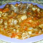 In the same oil, adding more if necessary, stir-fry onion and chilli pepper until limp. Add tomatoes and stir-fry for another minute, then add fish and remaining ingredients, except pineapples. Gently stir-fry for 2 minutes, then stir in pineapples and serve.
