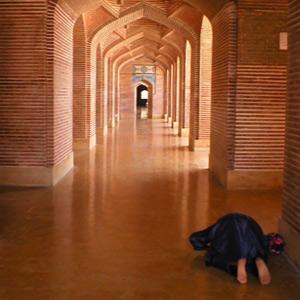 The main prayer hall is on the west side. Its dome is not visible, which is another anomaly considering the Moghuls' love for building splendid domes. It is hidden behind a big and imposing entrance on the west side of the mosque.