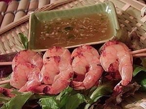 Combine soy sauce, chili garlic sauce and shao xing or sherry in a non-metal bowl. Add shrimp and mix thoroughly to coat. Marinate for 1 hour. Skewer each stick with 6 shrimp and cut in half with a pair of kitchen shears for easier handling. Cook on a grill pan, electric grill or outdoor barbeque until just pink and tender, about 2 minutes per side. Serve with Nuoc Cham Dipping Sauce. Serves 4.