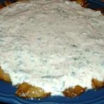 Thoroughly mix remaining ingredients, including remaining salt, then pour evenly over eggplant slices and serve.