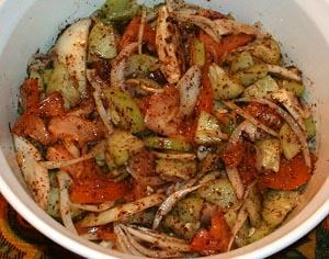 1 large tomato, quartered, then sliced 1/4 inch thick
