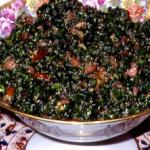 Combine remaining ingredients, except lettuce leaves, then pour over burghul and vegetables. Toss and serve on a bed of lettuce leaves.