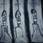 By reducing human beings down to their simplest features, she actually highlights the physical differences, while simultaneously showing us how we are bound together by the same fate and conditions. In one eerie piece, the faces are lined up in square boxes, like ID photographs stuck on a wall. As with her other paintings Y Nhi has made the faces individualistic, suggesting a private history to each person in each square box. But once again, by placing the boxes in a grid and making them repetitious, she has given them the same fate. The painting looks remarkably like the walls in countless Vietnamese temples - with photo portraits of the deceased all pasted upon the wall, forming a shrine above the urns containing their ashes.