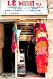 If you don't have time to have something made, never fear because Le Minh's ready-to-wear inventory is extensive. There are Western and Vietnamese clothes. Their most popular item is the Vietnamese-style shirt in raw silk with a mandarin collar and traditional frog closures. The shirts run about fifteen dollars. Raw silk pants are about ten dollars. Tailored jackets with self-covered buttons cost twenty-five to thirty dollars. There are silk t-shirts for about twelve dollars, pajamas for fourteen dollars and scarves for ten dollars.