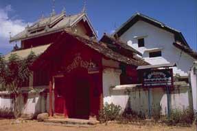The Thai king who founded Chiang Mai enclosed Keng Tung with a wall, from which evolved the town's final meaning, "The Walled City of Tung." With an original circumference of seven and a half miles and with seven gates, all that remained was a single arch. In 1991, Keng Tung lost another historical landmark, the teak palace or haw of a Shan prince called a saopha, the last descendant of a dynasty that had existed since the Burmese conquered the Lanna Kingdom in the sixteenth century, arguably the time when Burmese and Shan enmity began. Its whimsical towers and domes, a symbol of Shan nationalism, that survive in a faded photograph sold clandestinely in Keng Tung, were torn down and replaced with what the Burmese thought more appropriate, a multi-storied hotel. A residence of a lower-ranking prince remains for travelers to view from the outside, its current occupants, United Nations Drug Control Program staff, no less significant today as royalty was in the past.
