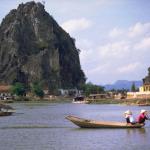 Greene had his reasons for being in Kim Son village where the great cathedral had taken shape between 1875 and 1899 under the strong will and creative genius of Phat Diem's first parish priest, Father Tran Luc, better known as Father Six. I was on a two-day route through Ha Nam Ninh Province, an increasingly popular traveler destination because of its magnificent limestone mountains that project from flat, water-filled rice paddies like the gigantic, triangular sails of a flotilla of boats and a landscape made famous by the movie Indochine. With me was Man, a Vietnamese friend in the travel industry who had accompanied me on three previous occasions into Vietnam's remote northern mountains. Joining me this time provided Man with an excuse to escape Hanoi, a city gripped by summer heat, as well as his busy office. He brought along an assistant, a young woman and recent university graduate of foreign languages dressed in jeans and runners and with her hair cut fashionably short. Energetic and eager to practice her translating skills, her name was Khanh, which means in English--appropriately for Phat Diem at least--'bell.'