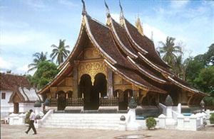 Amongst the most magnificent of the city's monuments is Wat Xieng Thong, the Golden City Temple erected in 1560, and particularly its scarlet-and-gold royal funeral carriage house.