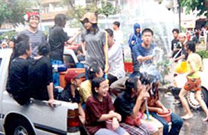 In recent years, however, the humble religious aspects of the holiday have given way to unrestrained water warfare. Surprisingly, considering the number of people and vehicles in the slippery mix, you will rarely observe any accidents or cases of road rage. Even police officers, stationed to prevent total anarchy from developing, become smiling, willing targets - though they are doused a lot more gently than the average citizen.