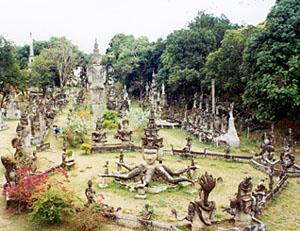 Just outside the city limits of Vientiane, our little old bus bounced down the dusty two-lane road towards the Friendship Bridge that connects Laos and Thailand. Just beyond that bridge, on the Laos side, was our destination, an outdoor sculpture park called Xiang Khouan. Besides my friend Rick and I, the bus was packed with grinning Laotians on their way to who knows where. As the only two pale faces on board, we drew lots of curious glances from the other passengers. We just grinned back and hoped the bus wouldn't break down.