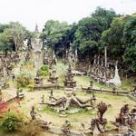 Xiang Khouan was built in the late 1950s by a Lao monk named Louang Pou Bounleua Soulilat. He moved to Vietnam for a few years to become the disciple of a cave-dwelling hermit, but returned to Laos an inspired man and ready to create an outdoor sculpture garden that reflected his version of life and the universe. The result is the massive collection of Hindu inspired sculptures that visitors now see at Xiang Khouan. After the Lao communist revolution in 1975, Soulilat fled across the border to Thailand and constructed a similar park near the town of Nong Khai.