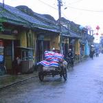 Now it was a group of women fruit sellers who were playing Chinese chequers. Above the artist's shop, they were still spinning silk. The barber was still waiting for someone to come in for a shave. I bought a silk tie for two dollars from the bicycle renter. Later, back home, I saw a photo of twenty rickshaws filled with snapping tourists, taken in Hoi An at another, sunnier, time. I'm glad I wasn't there then.