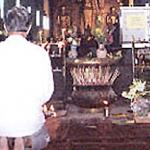 Come nightfall on these days, Thai Buddhists throng to their local temples. They gather in the ordination hall (bot) for monk-led chanting of scriptures. Then, amidst an impressive cloud of incense smoke, the faithful vien tien, or walk three times clockwise round the ordination hall (bot) or relic chamber (chedi). As they process, their waiing hands hold three burning incense sticks, a lit candle, joss sticks or flowers, and a lotus bud. This circumambulating is said to signify a whirlpool that will transport the participants from hell to Nirvana; the recurring number 3 signifies the Buddha's wisdom, great kindness, and purity.